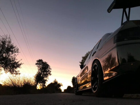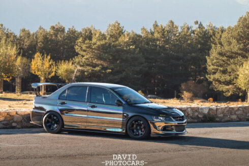 Wrap Mitsubishi Lancer Evolution 8. color Black Chrome.